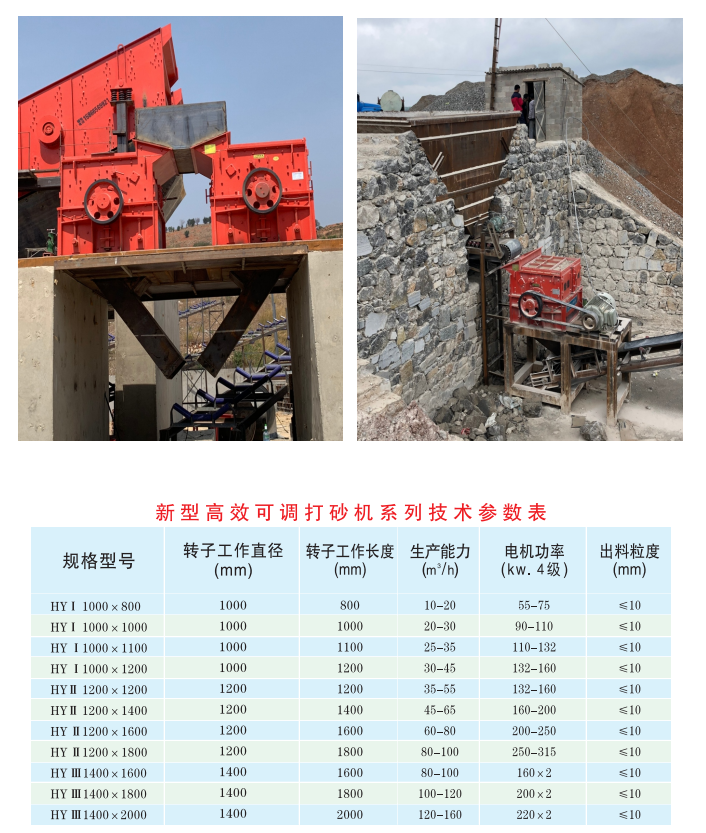 | 規(guī)格型號 | 轉子工作直徑(mm) | 轉子工作長度(nm) | 生產能力(m3/h) | 電機功率(kw.4機) | 出料粒度(mm) |