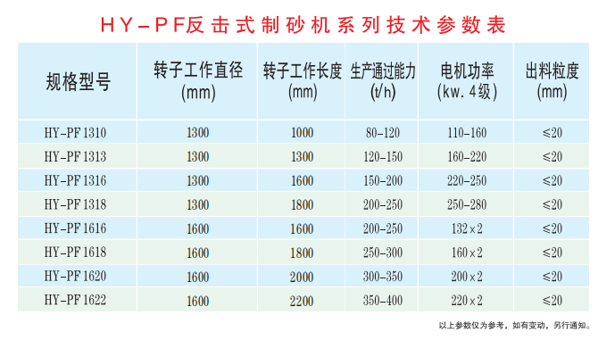 | 規(guī)格型號 | 進(jìn)料粒度(mm) | 出料粒度(mm) | 產(chǎn)量(t/h) | 配用電機(jī)功率(kw) | 外形尺寸(長*寬*高) | 設(shè)備轉(zhuǎn)速(r/min) | 進(jìn)口料尺寸(mm) |